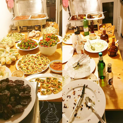 Was gab's denn so? Frischkäse in Pur und mit Bärlauch, Cashewparmesan, Büddamülch (natur und Erdbeer), 2 rohvegane Kuchen und ein gereifter Chorizokäse.